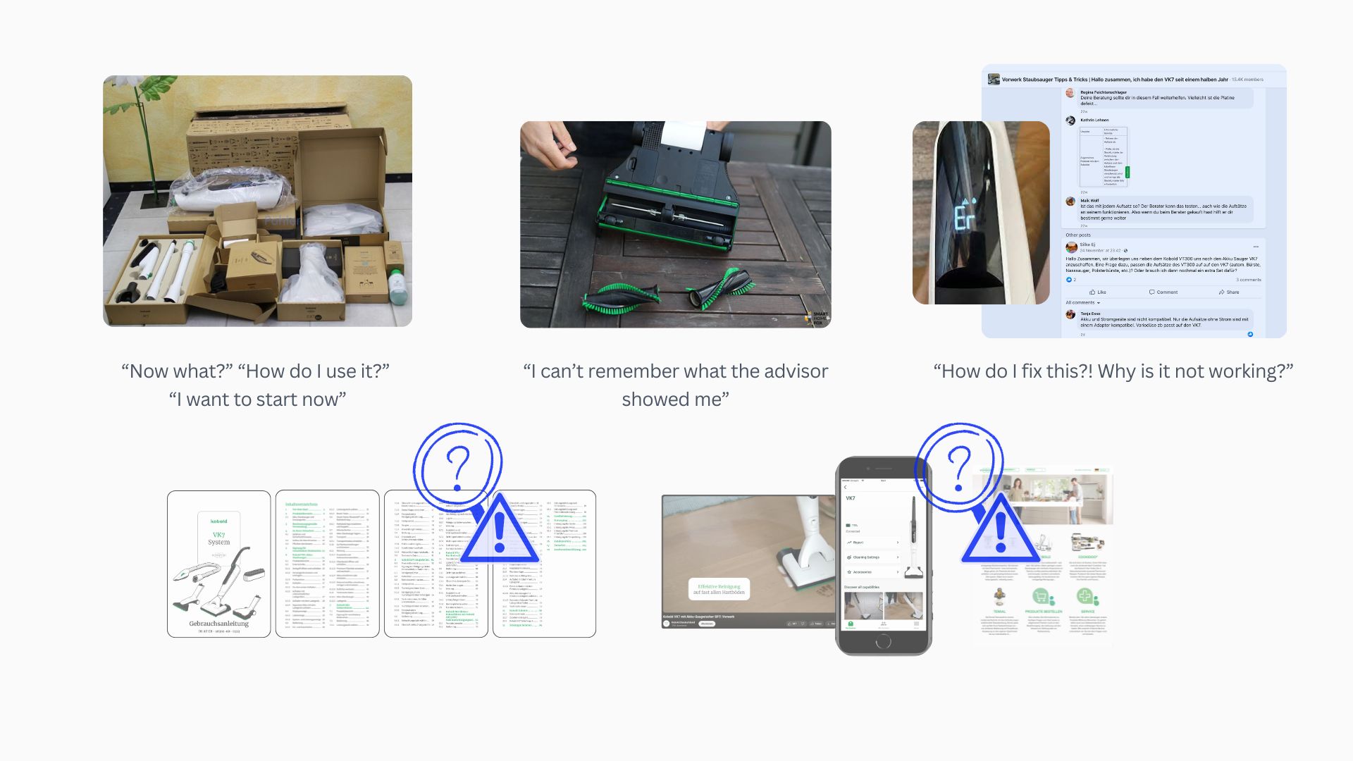 In reality, the "Instruction Gap"—the distance between what a product can do and what a user knows how to do—is a multi-million dollar liability. It manifests as unsatisfactory reviews, premature warranty claims, and thousands of calls to support centers. Even for an intuitive brand like Vorwerk, this gap was the final frontier of the customer experience.